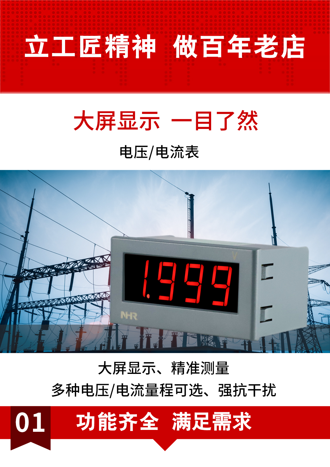 虹潤公司是專業(yè)生產(chǎn)數(shù)字電壓表的國家專精特新“小巨人”企業(yè)。生產(chǎn)的電壓/電流表,具有大屏LED顯示,交直流電壓/電流輸入,免設(shè)置易接線,性價(jià)比高等特點(diǎn)。產(chǎn)品獲得一種交流信號(hào)變送器、交直流信號(hào)轉(zhuǎn)換電路、基于DCS技術(shù)的盤裝式三相電量表等3項(xiàng)國家發(fā)明專利,主持起草現(xiàn)場(chǎng)設(shè)備集成等5項(xiàng)智能制造國家標(biāo)準(zhǔn),物聯(lián)網(wǎng)電流變送器規(guī)范、物聯(lián)網(wǎng)總體技術(shù)智能傳感器特性與分類等2項(xiàng)國家標(biāo)準(zhǔn),以及直流漏電流傳感器規(guī)范、通信系統(tǒng)多通道數(shù)據(jù)采集控制終端規(guī)范等2項(xiàng)軍用標(biāo)準(zhǔn),參與國際5G標(biāo)準(zhǔn)制定。產(chǎn)品廣泛應(yīng)用于電力系統(tǒng)、工業(yè)制造、自動(dòng)化設(shè)備、計(jì)量檢測(cè)等各種工業(yè)領(lǐng)域。