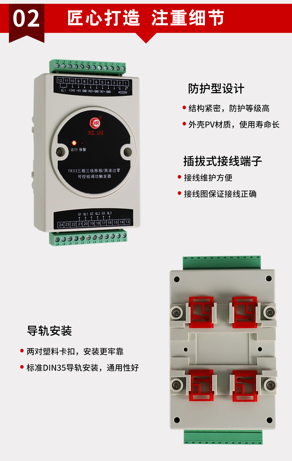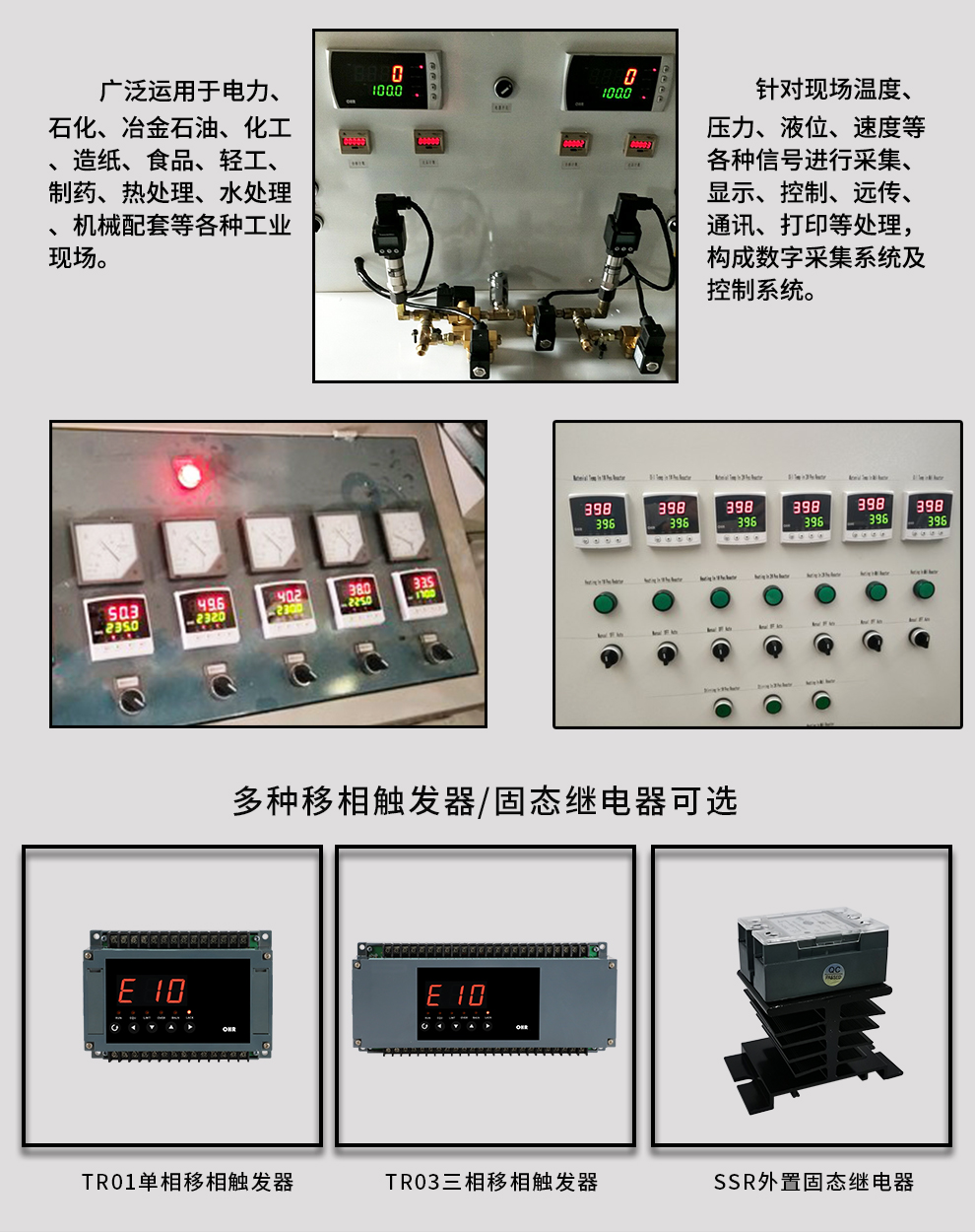 虹潤公司是專業(yè)生產(chǎn)移相觸發(fā)器的國家專精特新“小巨人”企業(yè),生產(chǎn)的移相觸發(fā)器,具有采用光電隔離設計,自動同步功能,過流保護技術(shù),電源缺相檢測,信號超限報警等特點。產(chǎn)品獲得巡回檢測顯示方法及裝置、儀表殼體等2項國家發(fā)明專利,主持起草工業(yè)過程控制系統(tǒng)用模擬輸入兩位或多位輸出儀表、物聯(lián)網(wǎng)智能溫度儀表通用技術(shù)條件等2項國家標準以及通信系統(tǒng)多通道數(shù)據(jù)采集控制終端規(guī)范軍用標準,參與國際5G標準制定,取得外置移相觸發(fā)器等2項相關軟件著作權(quán)。產(chǎn)品廣泛應用于工業(yè)溫控、電極控制、航天軍工、電爐溫控、食品醫(yī)藥等諸多領域。