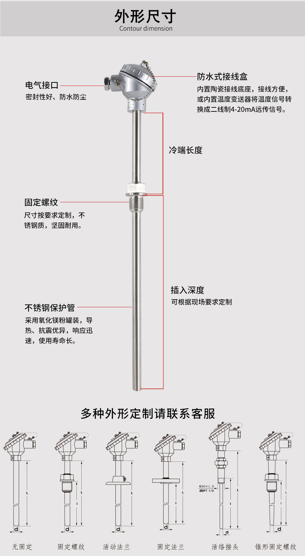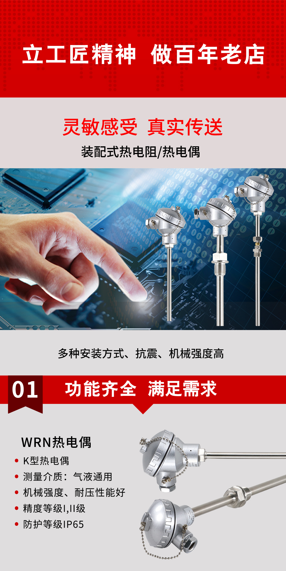 裝配式熱電阻熱電偶作為溫度測(cè)量傳感器,通常與溫度變送器、調(diào)節(jié)器及顯示儀表等配套使用,組成過(guò)程控制系統(tǒng),用以直接測(cè)量或控制各種生產(chǎn)過(guò)程中流體、蒸汽和氣體介質(zhì)以及固體表面等溫度。