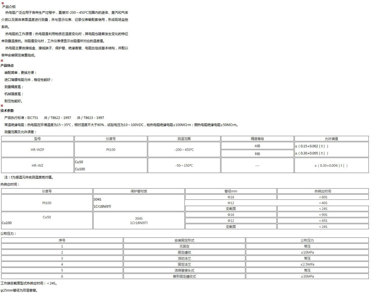 熱電阻(thermal resistor)是中低溫區(qū)最常用的一種溫度檢測器。熱電阻測溫是基于金屬導(dǎo)體的電阻值隨溫度的增加而增加這一特性來進(jìn)行溫度測量的。它的主要特點是測量精度高,性能穩(wěn)定。其中鉑熱電阻的測量精確度是最高的,它不僅廣泛應(yīng)用于工業(yè)測溫,而且被制成標(biāo)準(zhǔn)的基準(zhǔn)儀。